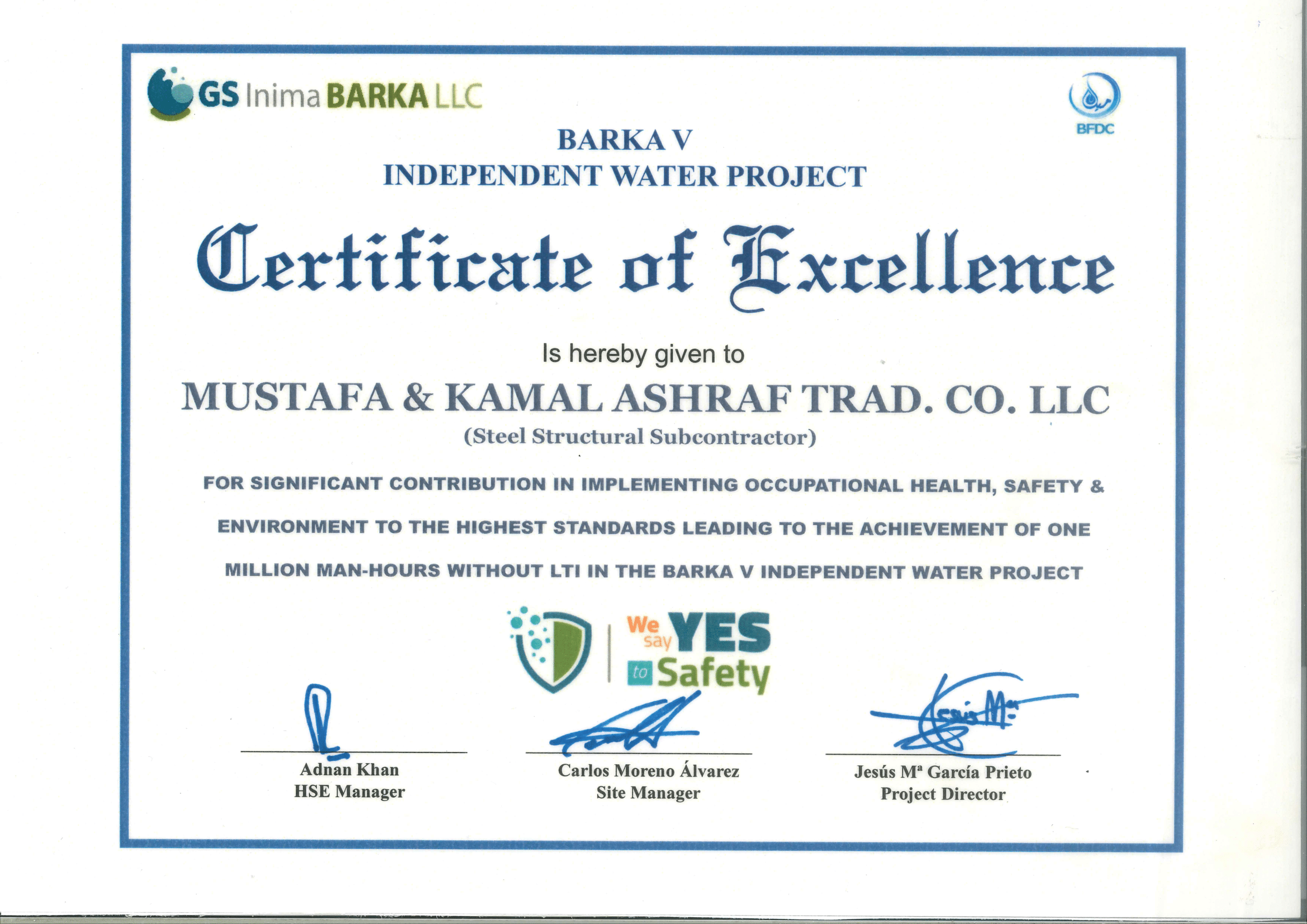 BARKA IWP CERTIFICATE OF EXCELLANCE