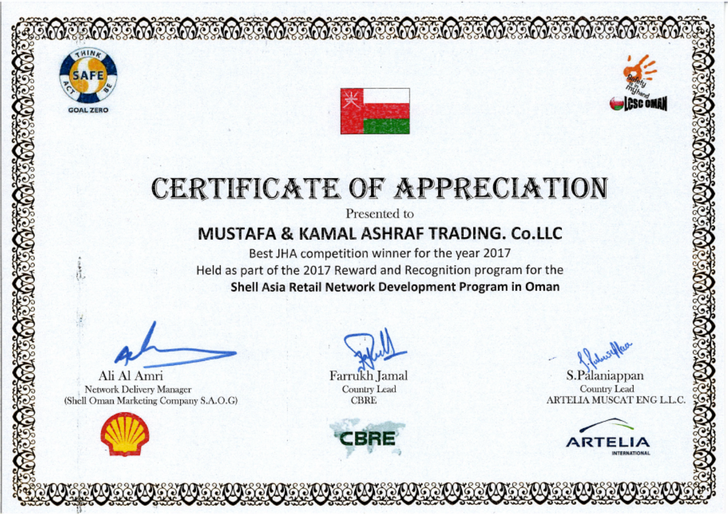 Certificate of Appreciation