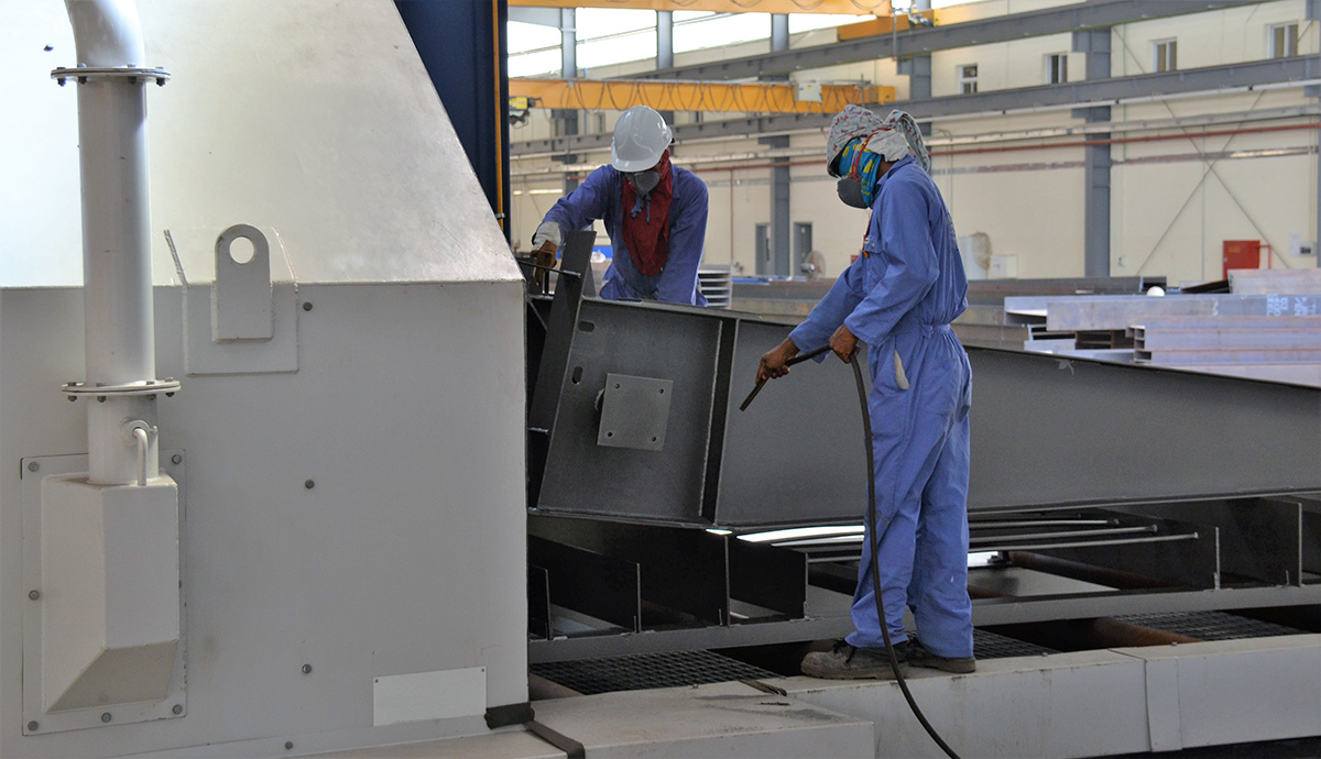 Our Manufacturing plant for steel fabrication is located in Rusayl Industrial Estate and has the production capacity of 7500 Metric tons per annum of built-up members alone. We will be able to cover up to 300,000 SQM of floor area per annum. We have invested in one of the most comprehensive manufacturing facilities in the industry.